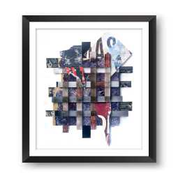Klar definierte, oft geometrische Elemente bilden das Grundgerüst für den Bildaufbau. Diese Strukturen wirken wie ein Netz, das den Blick des Betrachters lenkt, und ihm Orientierung gibt. Durch die partielle Verwendung des Strukturdrucks treten unter anderem abstrahierte Linienmuster und geometrische Formen in einen Dialog mit der Farbe. Diese setzt gezielt Kontraste, akzentuiert bestimmte Bereiche und erzeugt so dynamische Spannungen im Gesamtbild. Der Einsatz von Farbtönen und Plakatabrissen – sei es in intensiver Plastizität oder in gedämpften Nuancen – verstärkt die emotionale Wirkung der Komposition.
